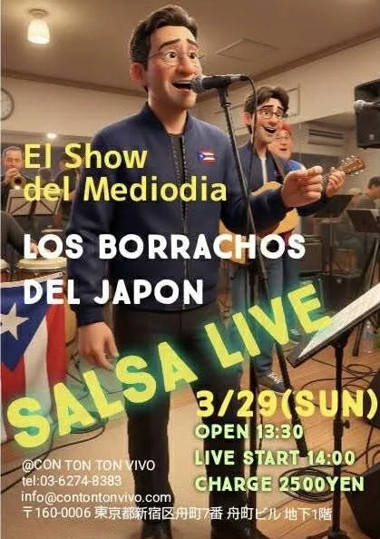 LOS BORRACHOS[MUSIC][昼公演] Sunday, March 29, 2026 1:30 PM 4:00 PM 13:30 16:00 Google Calendar ICS サルサ一筋40年今年もよろしくお願いしますメンバー一同健康に留意しながら頑張ります日時:2026年3月29日(日) 13:30 OPEN, 14:00 START チャージ:¥2,500出演:LOS BORRACHOSご予約はこちらから→