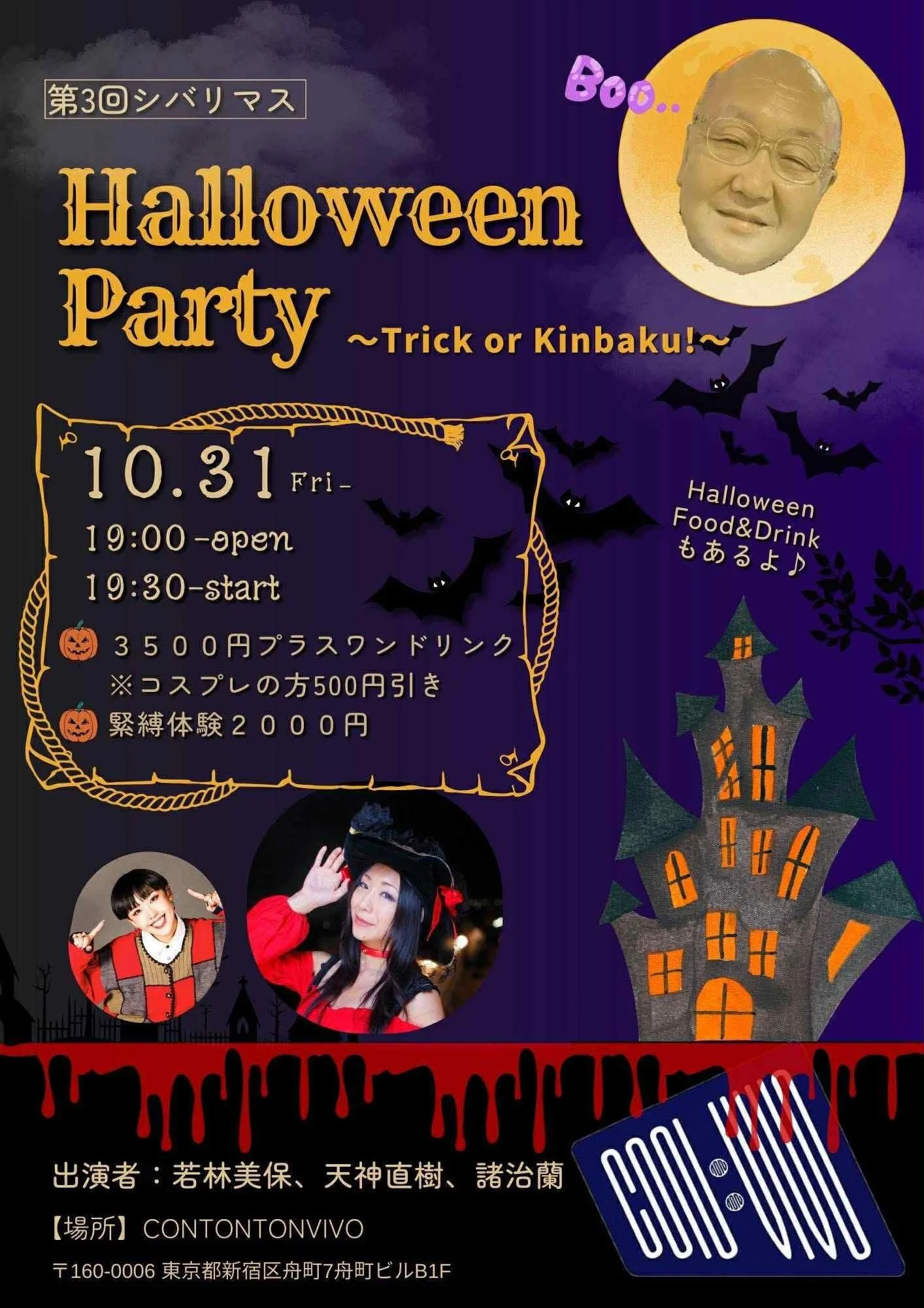 第3回シバリマス[THEATER,KINBAKU][夜公演] Friday, October 31, 2025 7:00 PM 10:00 PM 19:00 22:00 Google Calendar ICS 第3回シバリマス一夜限りのハロウィンイベントin CONTONTONVIVO 四谷三丁目お芝居、踊り、歌、緊縛!みんなでハロウィンパーティしましょまったり楽しいイベントです出演若林美穂諸治蘭天神直樹19時オープン19時半スタート料金3,500円コスプレの方500円引きハロウィンフード&ドリンクあります緊縛体験2,000円ご予約はこちらから→